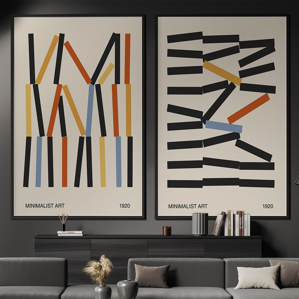 Na prática, isso significa que o minimalismo busca eliminar qualquer excesso, focando em linhas limpas, formas simples e cores neutras, quando aplicado a quadros e arte de parede, o minimalismo se traduz em obras que seguem esses princípios.